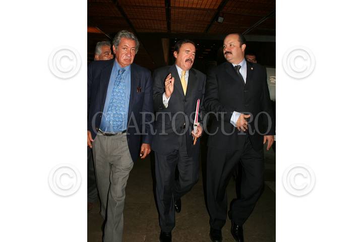 MEXICO, D.F. 04MAYO2005.- Los diputados José González Morfin, y Manlio Fabio Beltrones, del PAN y del PRI, respectivamente, conversan durante la sesión permanente en la casona de Xicotencatl. FOTO: Sandra Perdomo/CUARTOSCURO.COM
