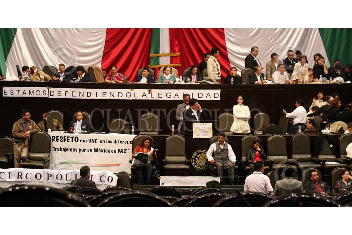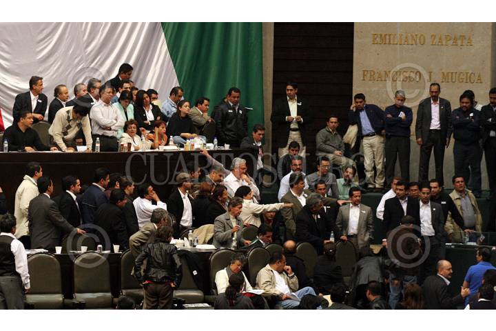 MÉXICO, D.F. 28NOVIEMBRE2006.- La tribuna continua tomada por diputados del PAN y PRD a más de 24 horas de la irrupción en la sesión en la cámara de diputados. FOTO: PAOLA HIDALGO/CUARTOSCURO.COM