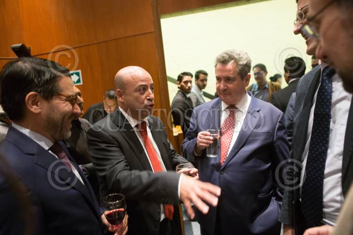 CIUDAD DE MÉXICO, 23AGOSTO2017.- Renato Sales Heredia, Comisionado de Seguridad Nacional, y Leonardo Curzio, durante le homenaje de despedida que le ofrecieron a Antonio Mazzitelli, representante de la ONU contra la droga y el delito en México, en el Instituto Nacional de Ciencias Penales. FOTO: TERCERO DÍAZ /CUARTOSCURO.COM