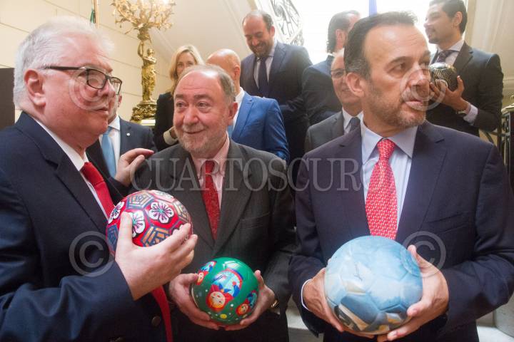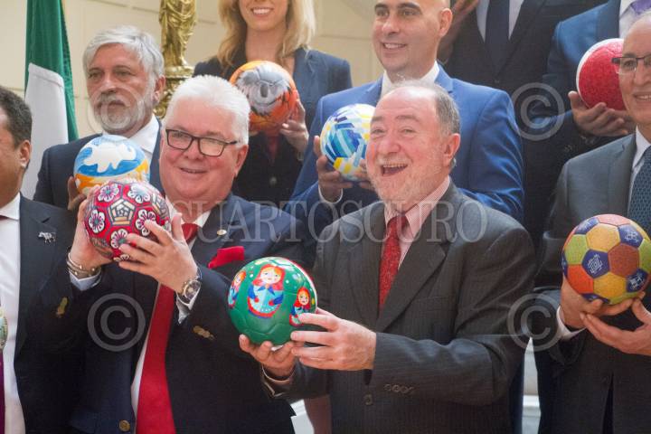 CIUDAD DE MÉXICO, 24MAYO2018.- Eduard Malayán, embajador de Rusia en México encabezo una ceremonia para presentar los balones que artistas Mexicanos plasmaron a identificacion de cada país, el eventi tuvo lugar en la Embajada. FOTO: VICTORIA VALTIERRA /CUARTOSCURO.COM