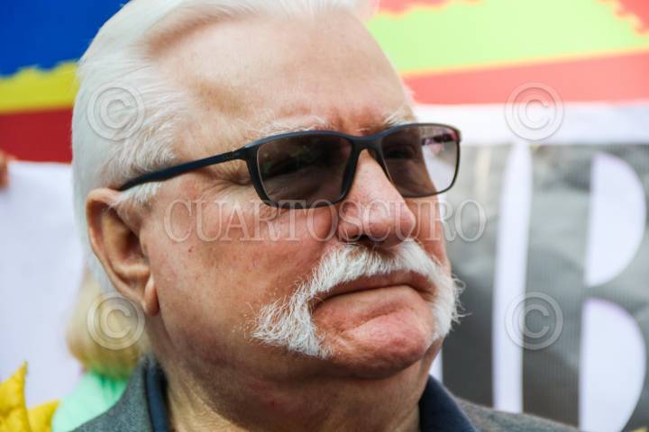 Lech Walesa, ex primer ministro de Polonia en la manifestación de disidentes Cubanos.
