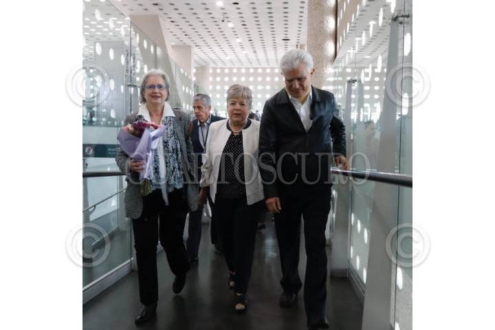 CIUDAD DE MÉXICO, 07ABRIL2024. - Roberto Canseco, Jefe de Cancillería en la embajada de México en Ecuador, y Raquel Serur, embajadora de México en Ecuador, llegaron esta mañana al Aeropuerto Internacional de la Ciudad de México (AICM), tras la ruptura diplomática entre México y estados luego de la incursión militar en la cancillería de México en aquel país. Los funcionarios fueron recibidos por la canciller Alicia Bárcena. FOTO: SECRETARÍA DE RELACIONES EXTERIORES/CUARTOSCURO.COM