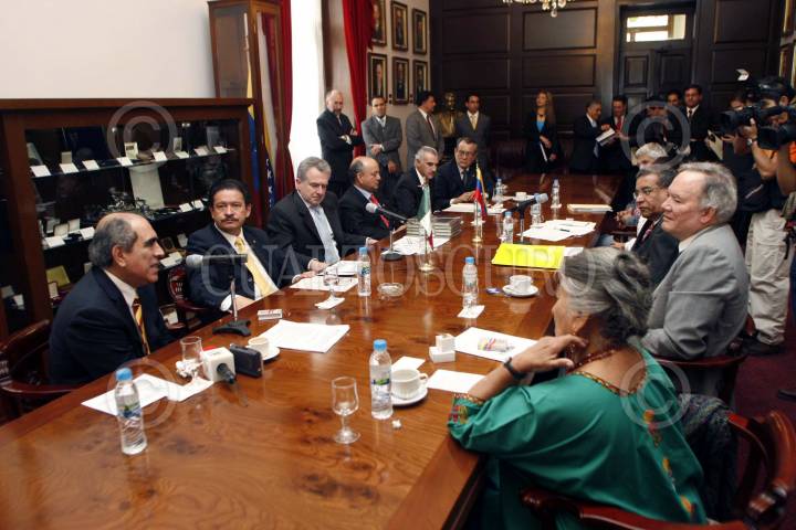 MÉXICO, D.F., 27SEPTIEMBRE2007.- Los senadores Pablo Gómez, Carlos Navarrete y Santiago Creel, recibieron de manos de diputados venezolanos un proyecto de reforma constitucional por el mandatario venezolano Hugo Chavez ante la Asamblea Nacional de aquél país. FOTO: ISRAEL VERA/CUARTOSCURO.COM