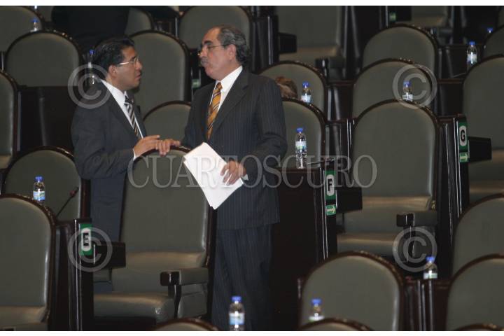 México, D. F. 20 Abril 2004.- Los diputados Germán Martínez (PAN) y Manuel Camacho Solís (PRD) conversan durante la sesión en la cámara de diputados. FOTO: Nelly Salas/CUARTOSCURO.COM