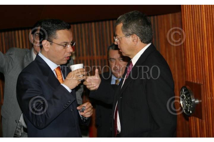 México, D. F. 20 Abril 2004.- Eduardo Duarte, presidente de la sesión instructora de desafuero conversa con Pablo Gómez, lider de la fracción parlamentaria del PRD en la cámara de diputados. FOTO: Nelly Salas/CUARTOSCURO.COM