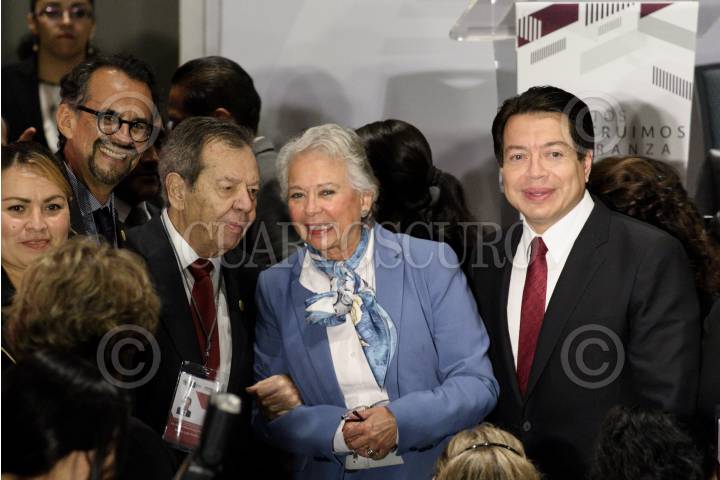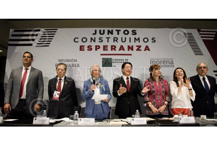 CIUDAD DE MÉXICO, 29AGOSTO2019.- Diputados del Grupo Parlamentario de Morena asistieron a la inauguración de la Reunión Plenaria en la que se definirá la agenda legislativa para el próximo 1 de septiembre. En la imagen, Ricardo Peralta Saucedo, subsecretario de Gobernación; Porfirio Muñoz Ledo, presidente de la mesa directiva de en Diputados; Olga Sánchez Cordero, secretaria de Gobernación y Mario Delgado, coordinador de Morena en Diputados. FOTO: MARIO JASSO /CUARTOSCURO.COM