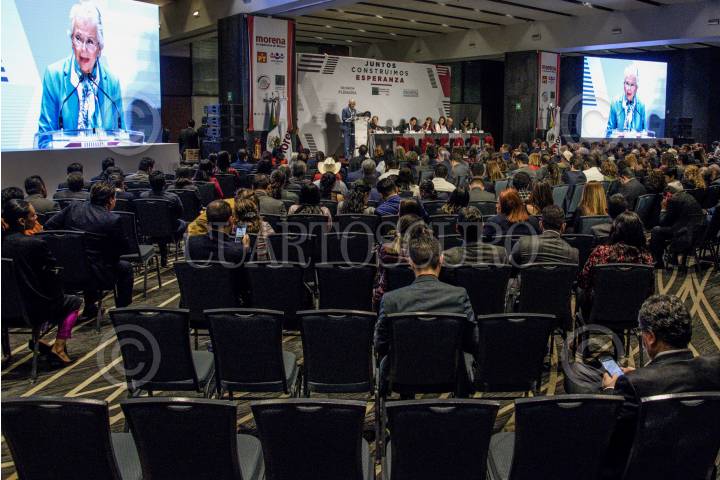 CIUDAD DE MÉXICO, 29AGOSTO2019.- Porfirio Muñoz Ledo, presidente de la mesa directiva de Diputados; Olga Sánchez Cordero, secretaria de Gobernación, y Mario Delgado, coordinador de Morena en diputados encabezaron la inauguración de la Reunión Plenaria en la que se definirá la agenda legislativa para el próximo 1 de septiembre. FOTO: MARIO JASSO /CUARTOSCURO.COM