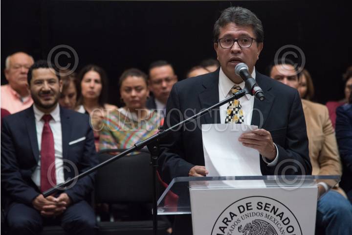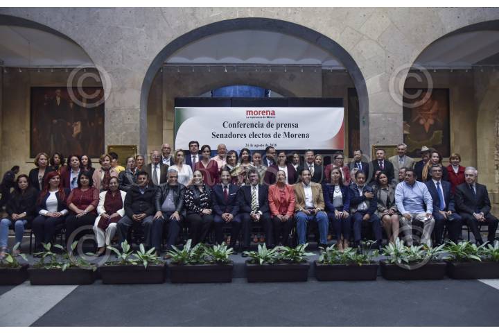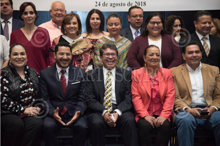 CIUDAD DE MÉXICO, 24AGOSTO2018.- Ricardo Monreal Ávila, próximo coordinador del Grupo Parlamentario en el Senado, ofreció conferencia de prensa junto con senadores electos de Morena, para manifestar su postura en contra gobernadores del PRI y el PAN por supuestamente intentar arrebatarles diputaciones locales plurinominales y presidencias municipales en 6 estados. FOTO: MARIO JASSO /CUARTOSCURO.COM