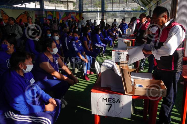TLALNEPANTLA, ESTADO DE MÉXICO, 08MAYO2024.- Por primera vez personas privadas de su libertad que aún no han sido sentenciadas podrán ejercer su voto para las elecciones 2023-2024 por candidato presidencial, jefatura de gobierno, alcaldes y diputaciones. El Centro Penitenciario y Reinserción Social de Tlalnepantla Lic. Juan Fernández Albarrán, fue la sede para que mujeres y hombres recluidos ejercieran su voto anticipado bajo la observación de de personal del Instituto Nacional Electoral. FOTOS: ROGELIO MORALES /CUARTOSCURO.COM