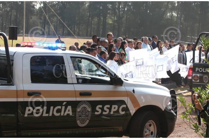 CUERNAVACA, MORELOS, 03ENERO2025.- Entrega de 50 patrullas con nueva imagen a la Secretaria de Seguridad Publica y Protección Ciudadana, que operaran en todo el estado. El evento se realizo en la 24 Zona Militar y estuvo encabezado por la gobernadora, Margarita González Saravia, el jefe de la Oficina de la Gubernatura, Javier García Chávez, Miguel Ángel Urrutia, secretario de Seguridad Publica y Protección Ciudadana, la presidenta del Congreso local, Jazmín Solano y la rectora de la Universidad de Morelos, Viridiana Aydeé León Hernández. FOTO: MARGARITO PÉREZ RETANA/CUARTOSCURO.COM