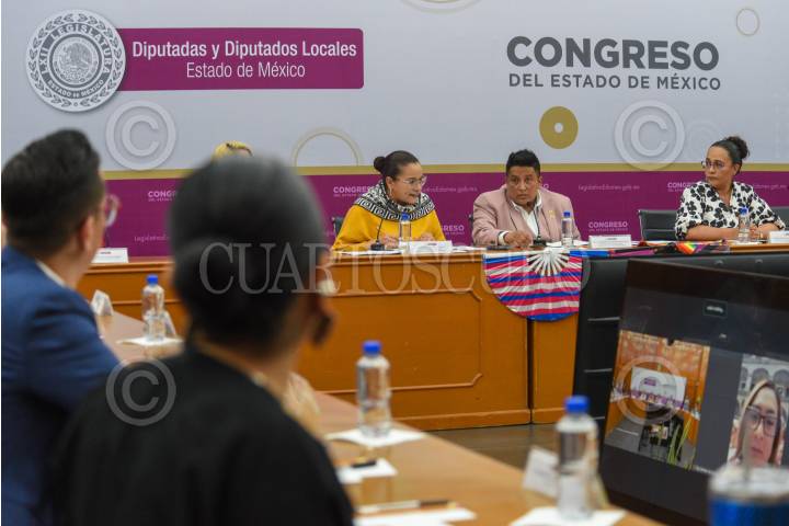 TOLUCA, ESTADO DE MÉXICO, 09JULIO2025.- Las diputadas Ana Yurixi Leyva Piñón, Jennifer Nathalie González, Arleth Stephanie Grimaldo, Zaira Zedillo Silva y le diputade Luisa Esmeralda Navarro integrantes de la Comisión Legislativa para las Declaratorias de Alerta de Violencia de Género contra las Mujeres por Feminicidio y Desaparición en la sesión donde se indicó que urge una coordinación estrecha con los municipios mexiquenses con alertas de género para lograr resultados, así como los recursos que son destinados a estos municipios sean utilizados con transparencia y un verdadero impacto social. FOTO: CRISANTA ESPINOSA AGUILAR/CUARTOSCURO.COM