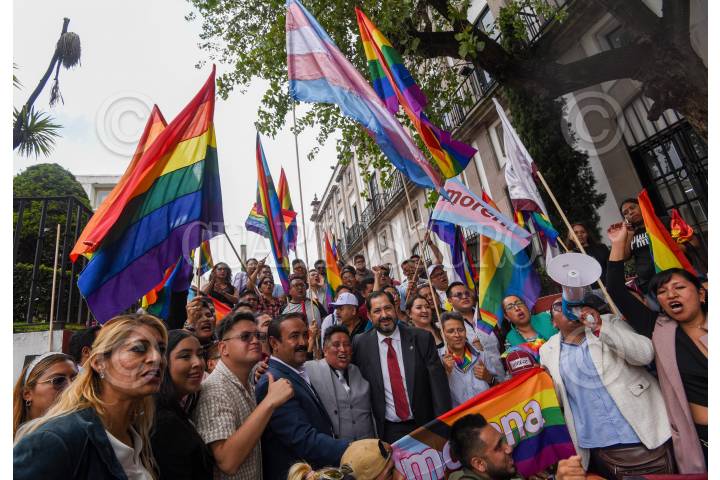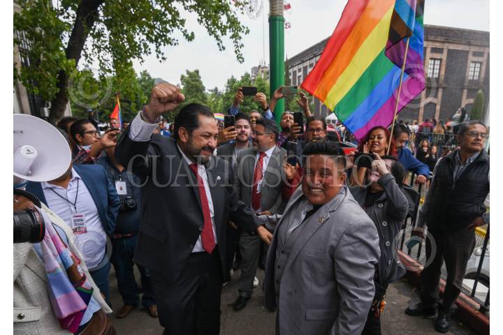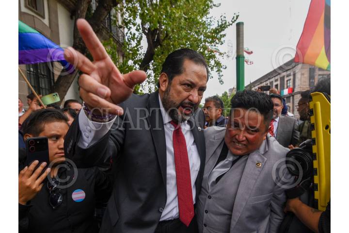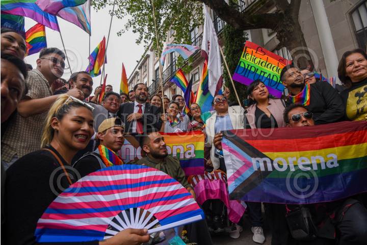 TOLUCA, ESTADO DE MÉXICO, 04SEPTIEMBRE2024.- Integrantes de la comunidad LGBTTTIQA+ celebraron la llegada de Meme Navarro como diputade de la LXII Legislatura local, convirtiéndose en la primer persona no binaria electa para este cargo por parte de MORENA, durante el festejo estuvo presente Francisco Vázquez, coordinador morenista en el Congreso local. FOTO: CRISANTA ESPINOSA AGUILAR /CUARTOSCURO.COM