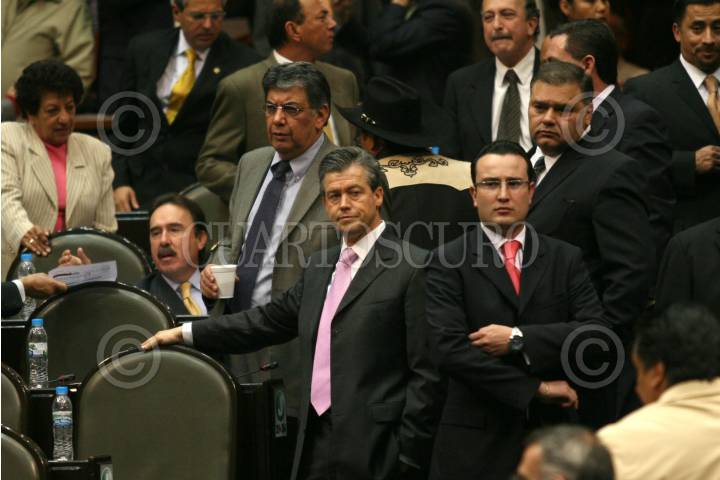 MÉXICO D.F. 14NOVIEMBRE2007.-El diputado del PAN, Gerardo Bugansa, asiste a la bancada del PRI donde dialoga con ellos.En la imagen Emilio Gamboa Patrón Jose Murat, diputadoa del PRI, durante la sesión en la Cámara de Diputados. FOTO: GUILLERMO PEREA/CUARTOSCURO.COM