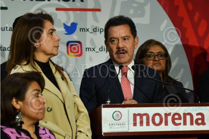 Ignacio Mier, diputado y coordinador de Morena, junto a legisladores de Morena, se pronunció en contra del proyecto de la Suprema Corte de Justicia de la Nación que consta en invalidar la prisión preventiva oficiosa.