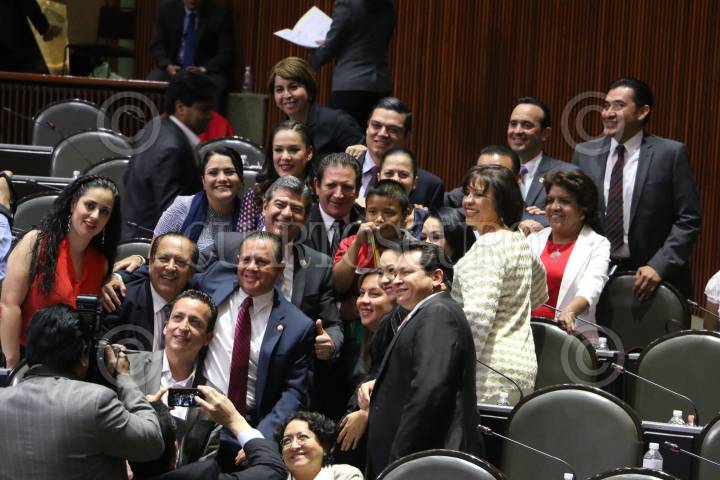 CIUDAD DE MÉXICO, 29MARZO2016.- Diputados del PAN se toman la foto con el boxeador infantil, Orlando “El Chocolatito” Navarrete, quien fue invitado por la diputada Jackie Nava al salón de plenos de la Cámara de Diputados. FOTO: SAÚL LÓPEZ /CUARTOSCURO.COM