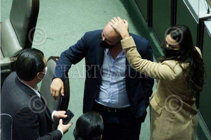 Los diputados del PAN: Adolfo Torres y Martha Romo durante la sesión ordinaria de la Cámara de Diputados.