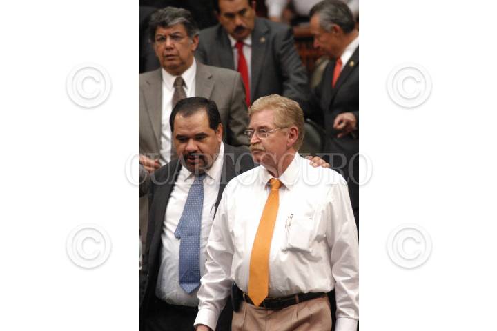 MÉXICO D.F. 20FEBRERO2007.- Los diputados Hector Larios del PAN, coordinador de la bancada del mismo partido y Javier Gozález Garza coordinador de los diputados del PRD, durante la sesión ordinaria en la Cámara de Diputados. FOTO: GUILLERMO PEREA/CUARTOSCURO.COM