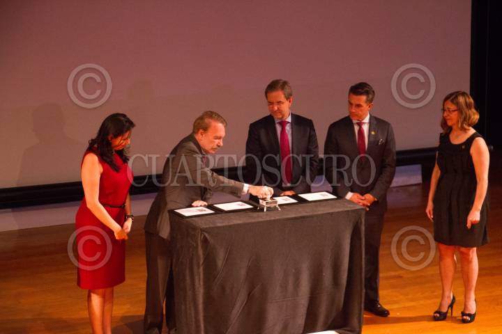 CIUDAD DE MÉXICO, 04MARZO2019.- Jimena Saldaña, Directora General del Canal Once, ario Alberto Rodríguez Casas, Director del Instituto Politécnico Nacional, Esteban Moctezuma Barragán, Secretario de Eduacció y Sergio Mayer Bretón, titula de la comisión de Cultura y Cinematografía, estuvieron presentes durante la ceremonia de festejo de los 60 años del Canal Once del Instituto Politécnico Nacional, en el auditorio Ing. Alejo Peralta del IPN Zacatenco. FOTO: ROGELIO MORALES /CUARTOSCURO.COM
