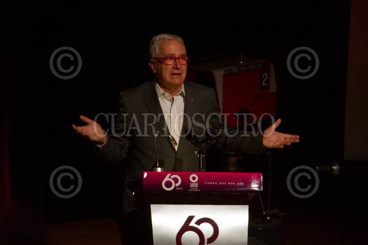 CIUDAD DE MÉXICO, 04MARZO2019.- Javier Solórzano Zinser, periodista y conductor del noticiero mañanero del canal, durante la ceremonia de festejo de los 60 años del Canal Once del Instituto Politécnico Nacional, en el auditorio Ing. Alejo Peralta del IPN Zacatenco. Dicho festejo estuvo acompañado de la directora del canal, Jimena Saldaña y ex directores. FOTO: ROGELIO MORALES /CUARTOSCURO.COM