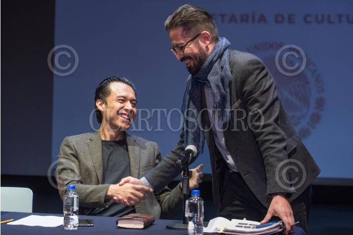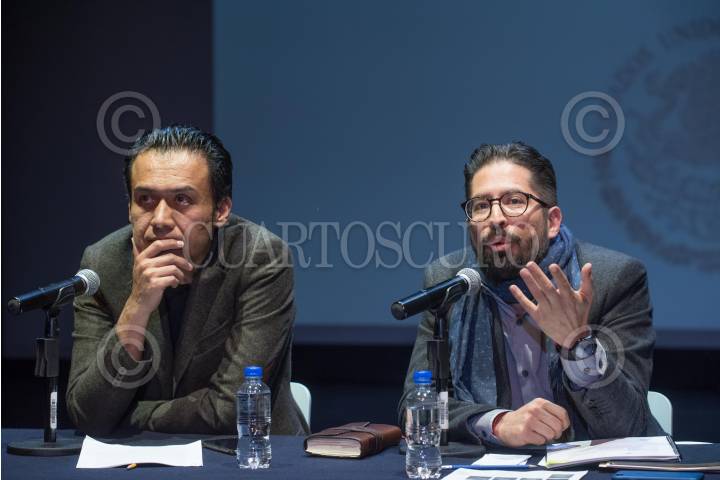 CIUDAD DE MÉXICO, 24JULIO2019.- Marx Arriaga Navarro, director general de Bibliotecas (DGB), y José Mariano Leyva, director de la Biblioteca de México, durante la presentación de La Estrategia de la Red Nacional de Bibliotecas Públicas, que constará en primera instancia la incorporación vinculada de actividades entre la Biblioteca Vasconcelos y la Biblioteca de México. FOTO: MARIO JASSO /CUARTOSCURO.COM