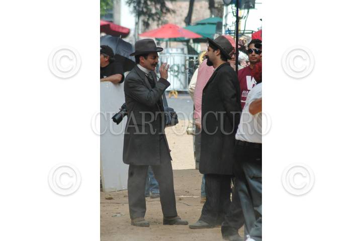 MÉXICO, D.F., 02DICIEMBRE2009.- Los actores Daniel Giménez Cacho y José María Yazpik durante la locación de la película El Atentado dirigida Jorge Fons que es rodada en calles del Centro Histórico y que cuenta la historia de un atentado fallido y patético perpetrado en 1897 en contra del presidente de la República Porfirio Díaz. FOTO: RODOLFO ANGULO/CUARTOSCURO.COM