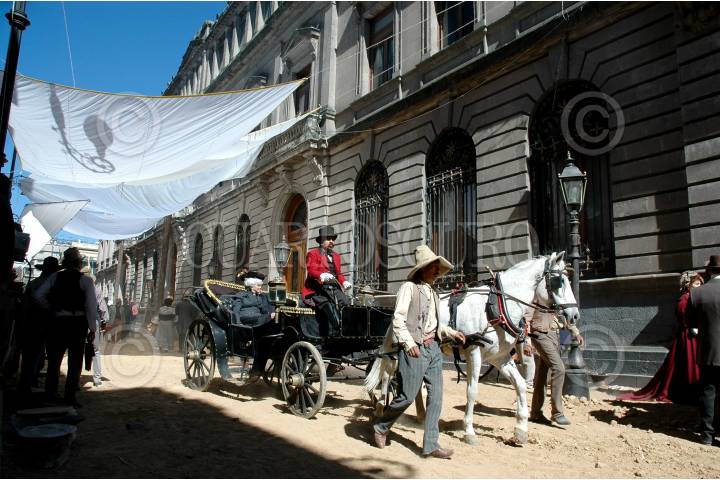 MÉXICO, D.F., 02DICIEMBRE2009.- Aspectos de la locación de la película El Atentado dirigida Jorge Fons que es rodada en calles del Centro Histórico y que cuenta la historia de un atentado fallido y patético perpetrado en 1897 en contra del presidente de la República Porfirio Díaz. FOTO: RODOLFO ANGULO/CUARTOSCURO.COM