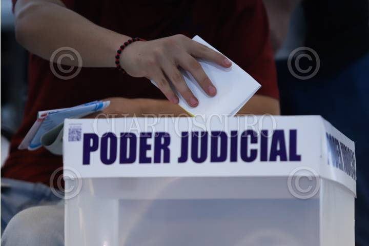 CIUDAD DE MÉXICO, 20MAYO2025.- Una persona participa en un ejercicio de demostración de cara a las elecciones del Poder Judicial. FOTO: DANIEL AUGUSTO/ CUARTOSCURO.COM
