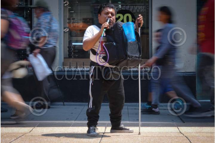 CIUDAD DE MÉXICO, 23ABRIL2025.- Un señor con discapacidad visual toca algunas melodías en la calle de Madero en el Centro Histórico. FOTO: GRACIELA LÓPEZ/CUARTOSCURO.COM