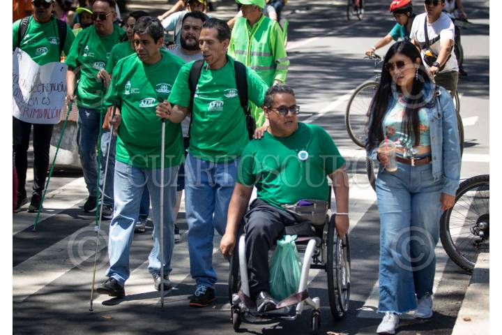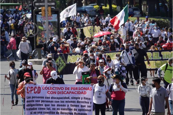 Personas con discapacidad visual, motriz y auditiva marcharon del Ángel de la Independencia al Zócalo capitalino para exigir inclusión y trabajos dignos para dicho sector.