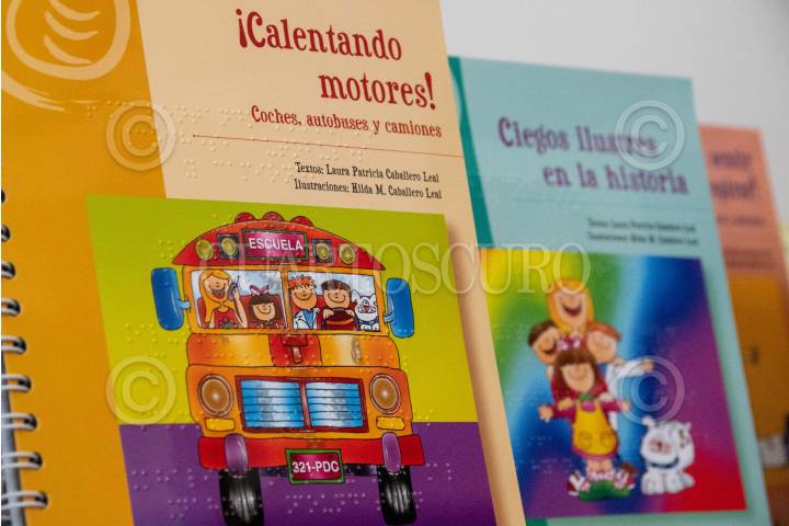 Aspecto de los libros donados por la Fundación Khalifa bin Zayed Al Nahyan para personas con discapacidad visual.