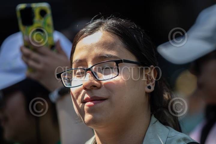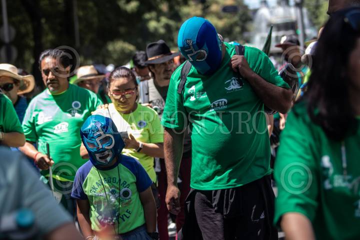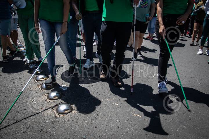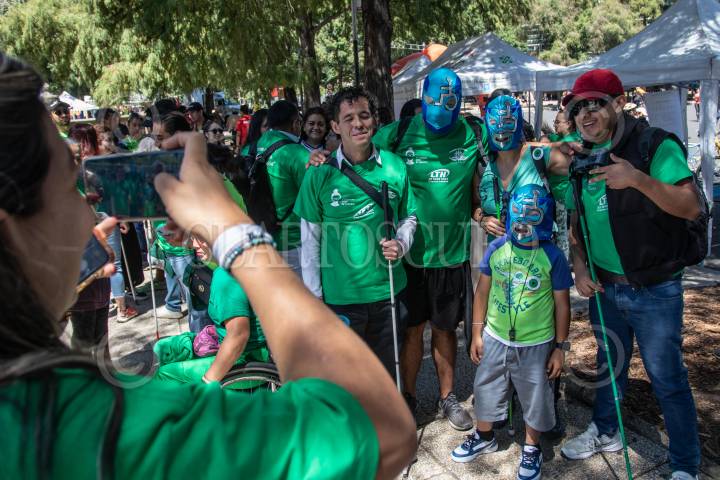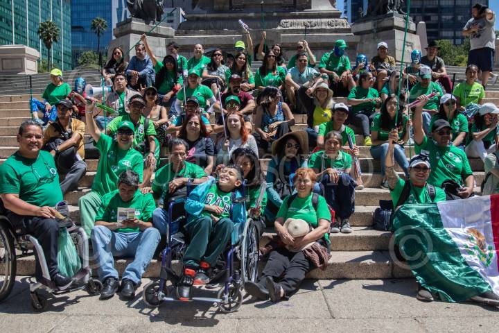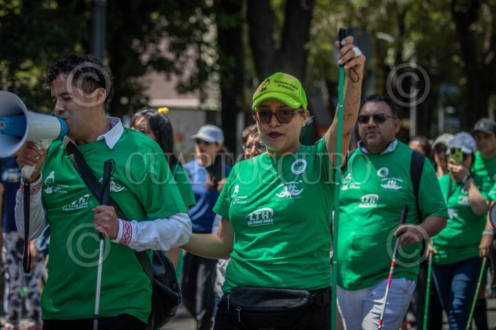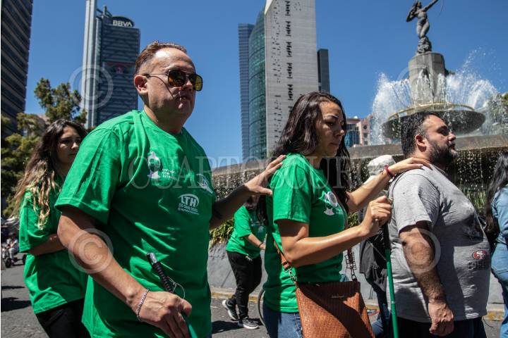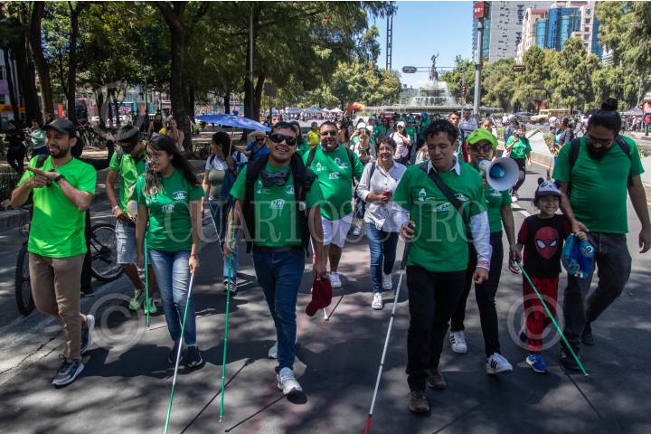 CIUDAD DE MÉXICO, 24SEPTIEMBRE2023.- Bajo la consigna “Siempre visibles, nunca invisibles” personas de todas edades con discapacidad visual llevaron a cabo la segunda Caminata verde en la Ciudad desde la Diana Cazadora recorriendo la Avenida Reforma hasta las escalinatas del Ángel de la Independencia en marco de la conmemoración del Bastón Verde como instrumento de orientación y movilidad para las personas con baja visión que se celebra el 26 de septiembre y también el día internacional de la retinitis pigmentaría. FOTO: ANDREA MURCIA /CUARTOSCURO.COM