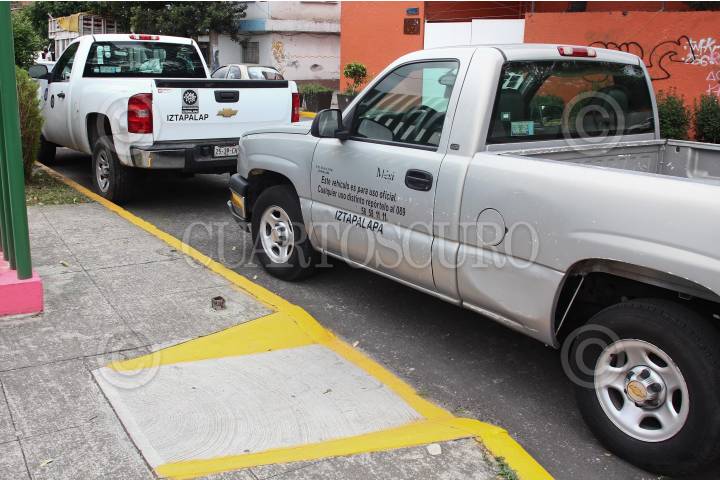 MÉXICO, D.F., 16AGOSTO2011.-Una camioneta oficial de la delegación Iztapalapa, bloquea el paso de discapacitados en la esquina del Eje 7 y Churubusco. FOTO: SAÚL LÓPEZ/CUARTOSCURO.COM