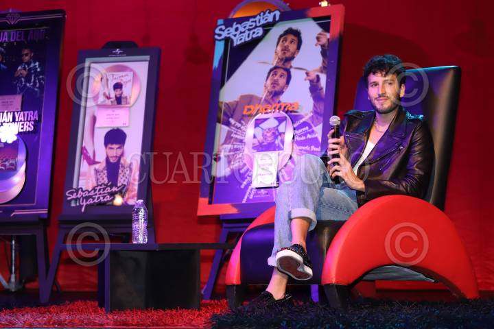 El cantante colombiano Sebastián Yatra recibió distintos reconocimientos por altas ventas de su disco Dharma, así como de sencillos y vistas en redes sociales, en el Lunario del Auditorio Nacional.