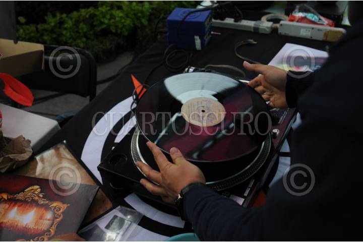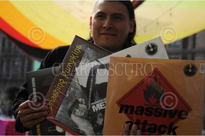 CIUDAD DE MÉXICO, 14FEBRERO2024. - Un disco de vinil suena dentro de la transmisión en e Zócalo. FOTO: DANIEL AUGUSTO /CUARTOSCURO.COM