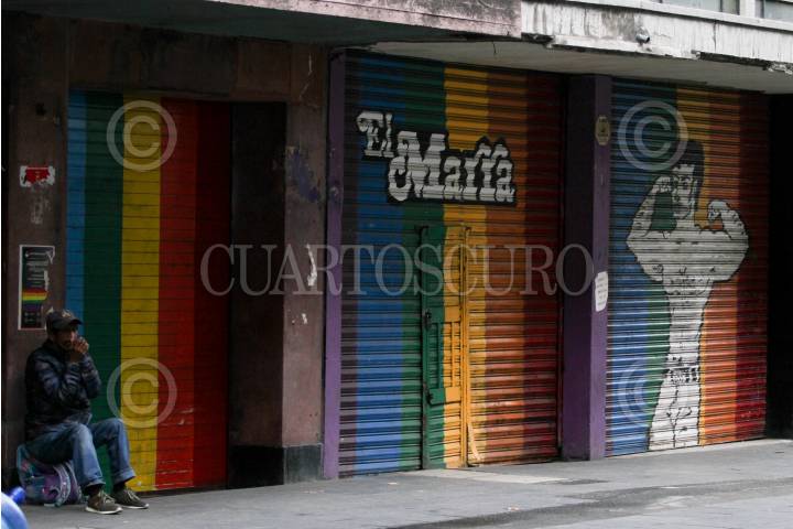 Un señor en situación de calle descansa frente al Antro "El Marra", el cual ha sido cerrado temporalmente desde que inició la pandemia