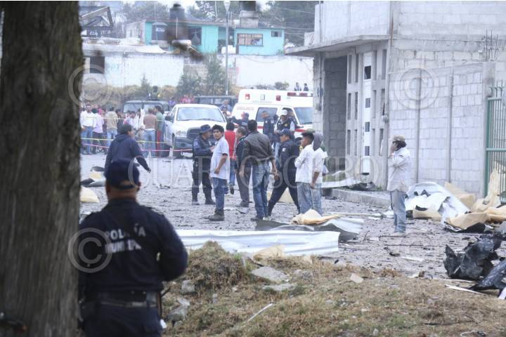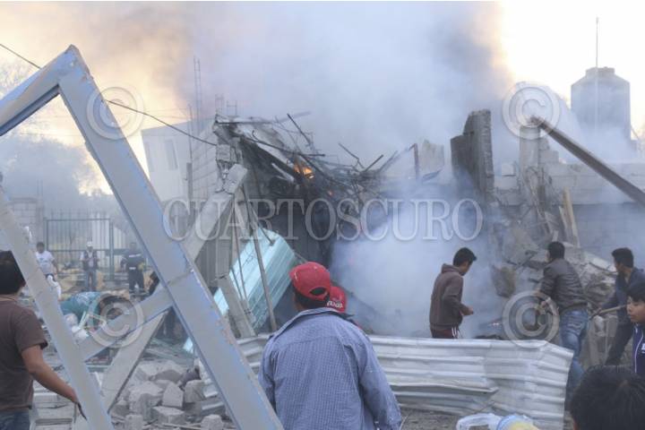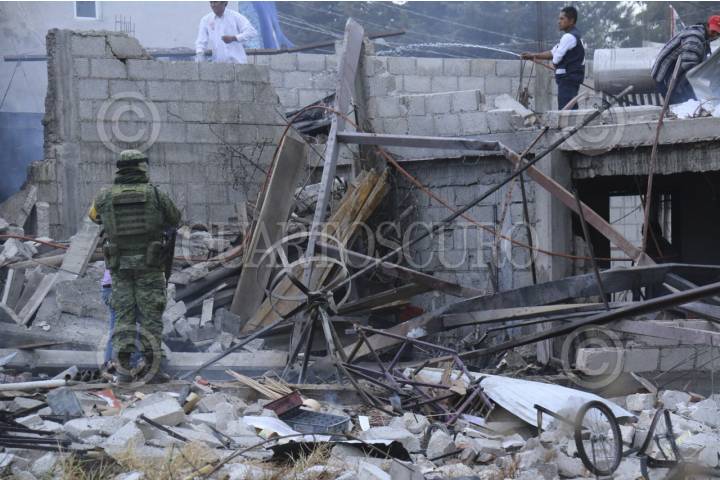 SAN COSME XALOZTOC, TLAXCALA, 03FEBRERO2017.- Una bodega clandestina que almacenaba contenedores de gasolina y diesel explotó la tarde de este viernes y causó gran pánico entre los vecinos de la calle Cuitlhuac, de la Segunda Sección “la Sierra”, del municipio de Xaloztoc. FOTO: JORGE LEZAMA /CUARTOSCURO.COM