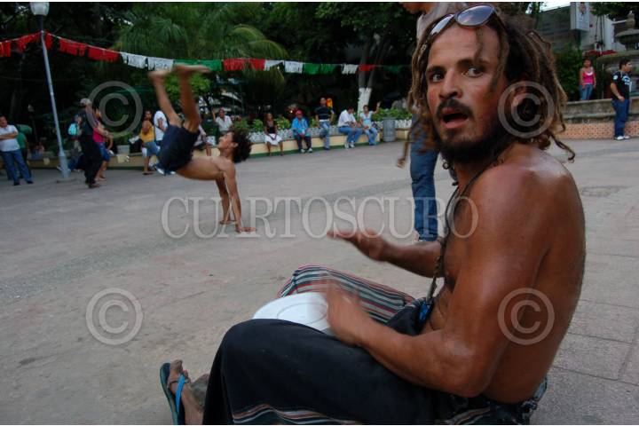 ACAPULCO, GUERRERO, 03OCTUBRE2009.- Jóvenes capitalinos practican baile callejero en la plaza Juan Álvarez de Acapulco, donde acuden turistas nacionales y extranjeros a disfrutar de paseo con sus familias. FOTO: MARINO D. VALDEZ/CUARTOSCURO.COM/