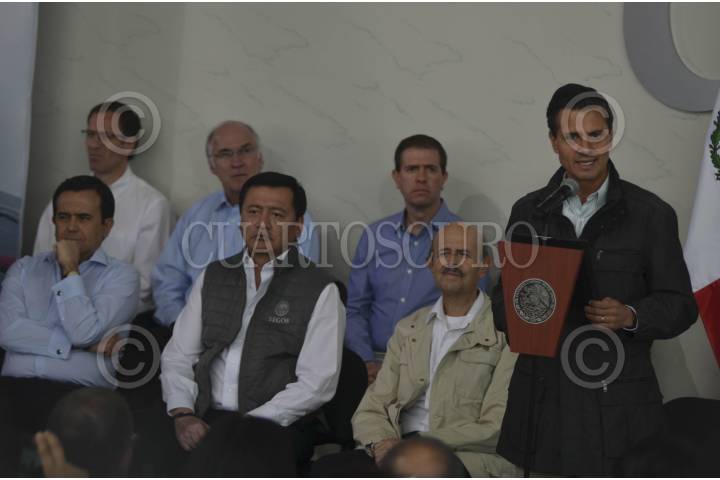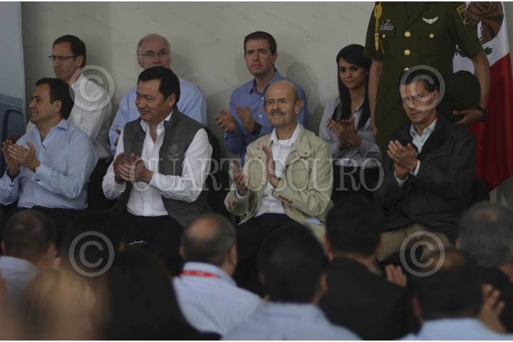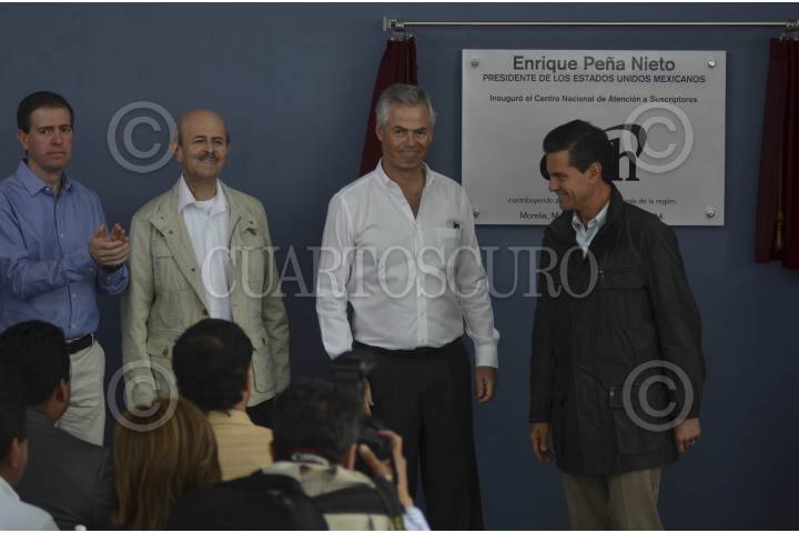 MORELIA, MICHOACÁN, 08ABRIL2014.- Enrique Peña Nieto, presidente de México, acompañado del Secretario de Gobernación Miguel Ángel Osorio Chong, Fausto Vallejo gobernador de Michoacan, Alfredo Castillo Cervantes, comisionado para la Seguridad y el Desarrollo Integral de Michoacán y Joaquín Vargas Guajardo, presidente del Consejo de Administración de MVS, asistieron a la inauguración del centro nacional de atención a suscriptores de DISH. FOTO ALAN ORTEGA /CUARTOSCURO.COM