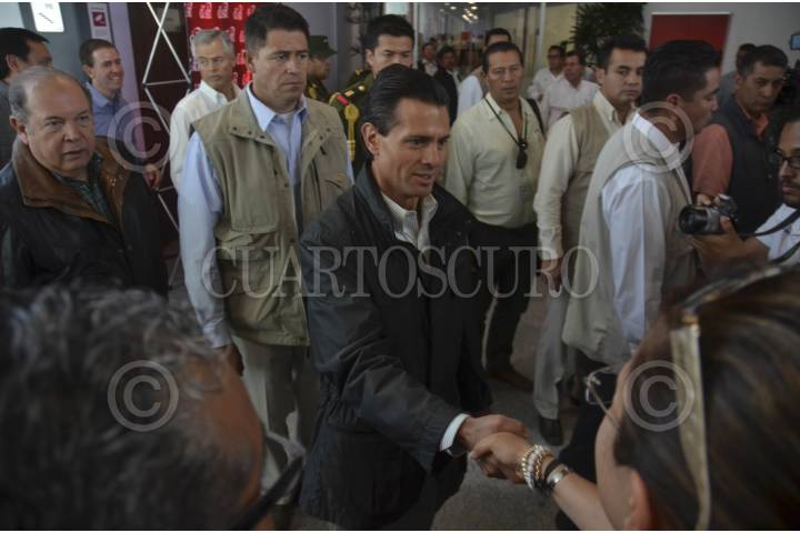 MORELIA, MICHOACÁN, 08ABRIL2014.- Enrique Peña Nieto, presidente de México, acompañado Fausto Vallejo gobernador de Michoacan, a su llegada a la inauguración del centro nacional de atención a suscriptores de DISH. FOTO ALAN ORTEGA /CUARTOSCURO.COM