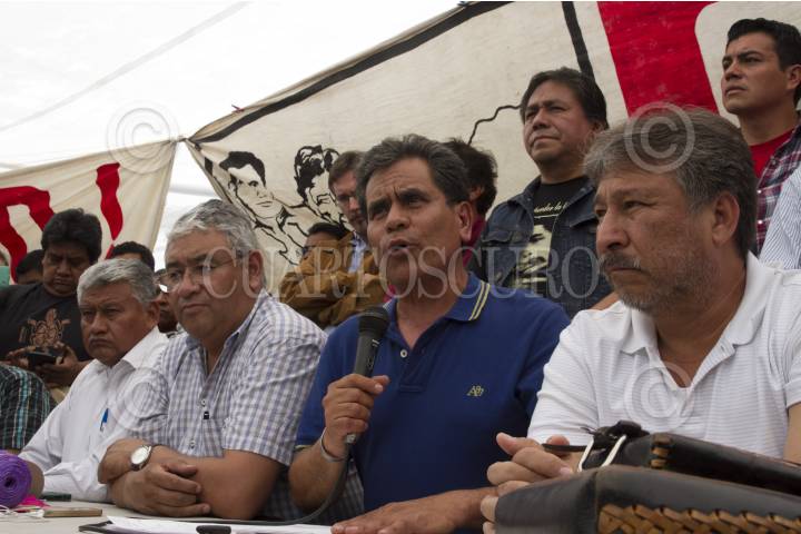 CIUDAD DE MÉXICO, 12JUNIO2016.- Los líderes de la Coordinadora Nacional de Trabajadores de la Educación; Reyes Ramos Guerrero, Enrique Enríquez Ibarra, José Antonio Altamirano Ojeda, y Adelfo Alejandro Gómez, ofrecieron una conferencia de prensa en el plantón que mantienen los mentores en la Ciudadela, para hablar de la detención de los líderes de la sección 22; Rubén Núñez y Francisco Villalobos Ricárdez. FOTO: MOISÉS PABLO /CUARTOSCURO.COM