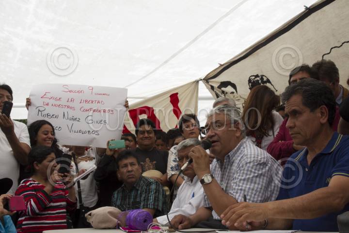 CIUDAD DE MÉXICO, 12JUNIO2016.- Los líderes de la Coordinadora Nacional de Trabajadores de la Educación; Reyes Ramos Guerrero, Enrique Enríquez Ibarra, y José Antonio Altamirano Ojeda, ofrecieron una conferencia de prensa en el plantón que mantienen los mentores en la Ciudadela, para hablar de la detención de los líderes de la sección 22; Rubén Núñez y Francisco Villalobos Ricárdez. FOTO: MOISÉS PABLO /CUARTOSCURO.COM