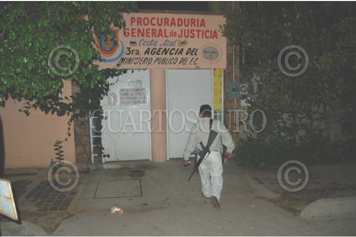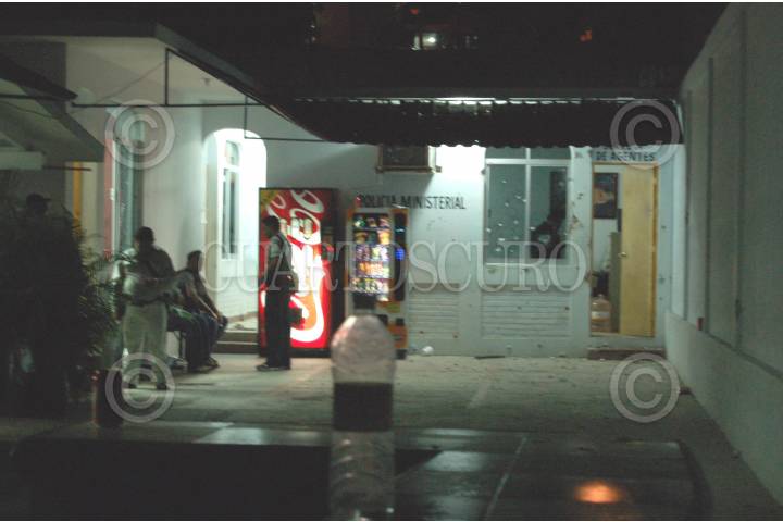 ACAPULCO, GUERRERO 29JUNIO2009.- Esta noche ,sujetos desconocidos dispararon con rifles AK-47 (cuernos de chivo) y AR-17 contra la coordinación operativa de la Policía Ministerial en Acapulco, donde se encuentran las oficinas del Ministerio Publico de la zona residencial de Costa Azul, donde resultaron dos agentes lesionados que fueron trasladados a un hospital de este puerto FOTO: MARINO D. VALDEZ/CUARTOSCURO.COM