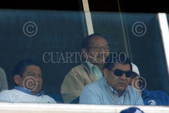 PUEBLA, PUEBLA, 24ENERO2010.- El gobernador de Puebla, Mario Marín Torres, estuvo presente durante el partido en el que el equipo de Lobos BUAP venció un gol por cero a Dorados de Sinaloa, encuentro que se disputaron en el estadio Cuauhtémoc. FOTO: FRANCISCO GUASCO/CUARTOSCURO.COM