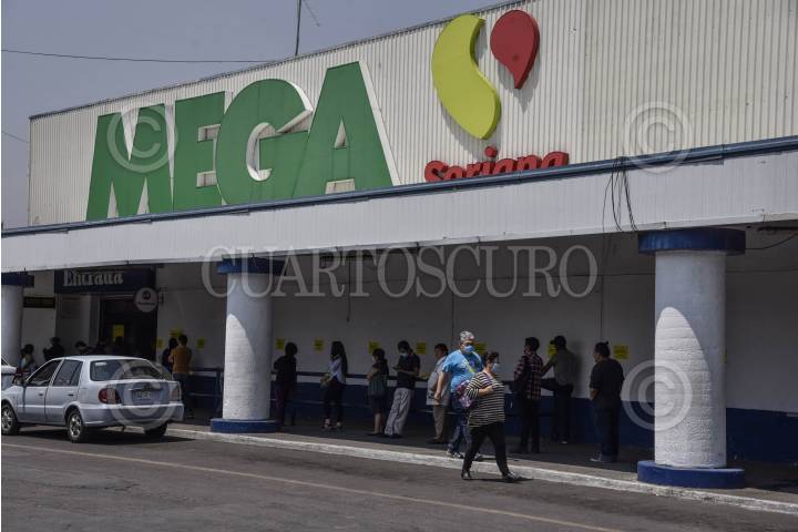 Como parte medidas de prevención durante la alerta sanitaria Fase 2 por coronavirus (covid-19), supermercados La ciudad continúan aplicando filas con sana distancia, ingresos de una persona por entidad y operativos de seguridad en el exterior por parte de elementos de la Secretaría de Seguridad Ciudadana (SSC).