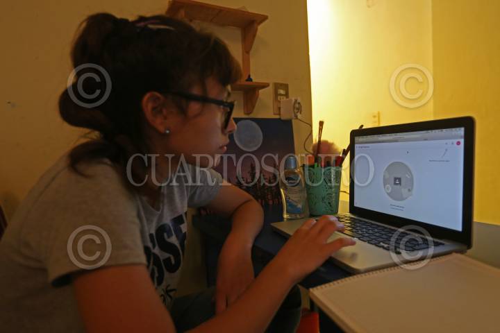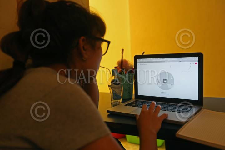 En la imagen una niña de primer grado de secundaria trata de conectarse a la plataforma creada para poder tener acceso al primer día de clases en Jalisco.