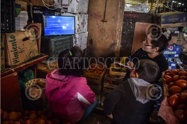 Lucero trabaja en un puesto de verduras del mercado de la Merced, tiene dos hijos, un niño en nivel preescolar y una niña de primer año de primaria, actualmente se adapta a la nueva modalidad de educación a distancia que se implementó a nivel nacional debido a la emergencia sanitaria por coronavirus (covid-19) que se vive en el país.
