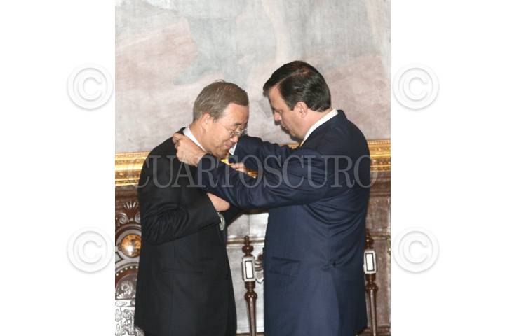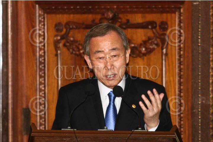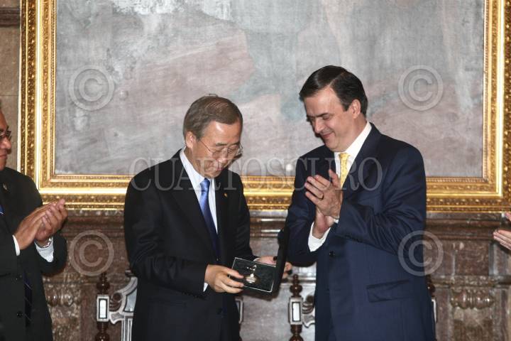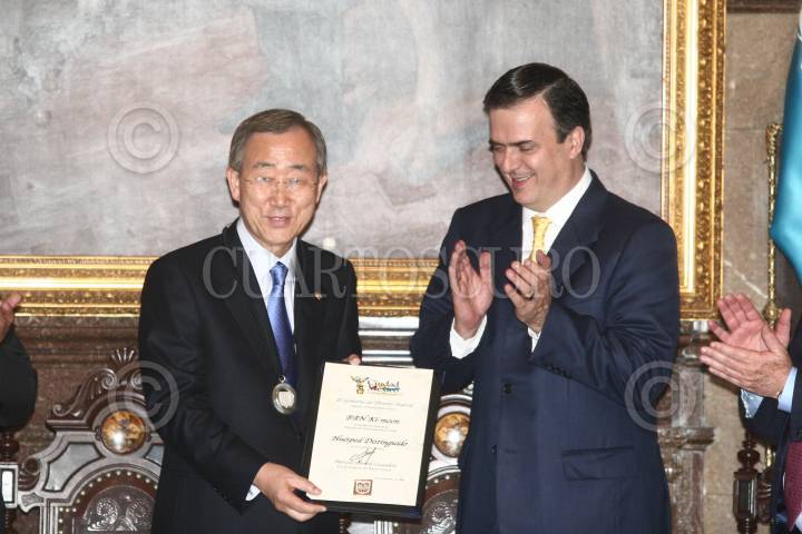 MÉXICO, D.F., 08SEPTIEMBRE2009.- Ban ki-Moon, secretario general de la Organización de las Naciones Unidas (ONU), acudio ésta tarde al salon de cabildos del antiguo palacio del ayuntamiento donde fue reconocido como huesped distinguido y recibio de manos de Marcelo Ebrard las llaves de la Ciudad de México. FOTO: SAÚL LÓPEZ/CUARTOSCURO.COM