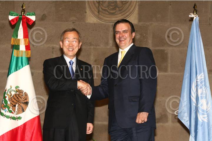 MÉXICO, D.F., 08SEPTIEMBRE2009.- Ban ki-Moon, secretario general de la Organización de las Naciones Unidas (ONU), acudió ésta tarde al salon de cabildos del antiguo palacio del ayuntamiento donde fue reconocido como huesped distinguido y recibio de manos de Marcelo Ebrard las llaves de la Ciudad de México. FOTO: SAÚL LÓPEZ/CUARTOSCURO.COM