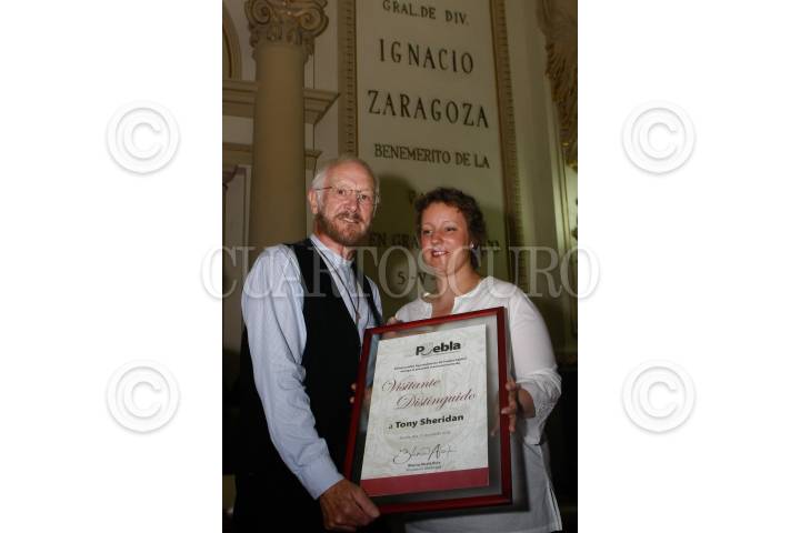 PUEBLA, PUEBLA 20JULIO2010.- Tony Sheridan, reconocido guitarrista inglés; recibió por parte de la alcaldía capitalina, el reconocimiento de visitante distinguido del estado. El experimentado músico quien durante su carrera musical colaboró con The Beatles, AC/DC, Elvis Presley, entre otros. FOTO: FRANCISCO GUASCO/CUARTOSCURO.COM
