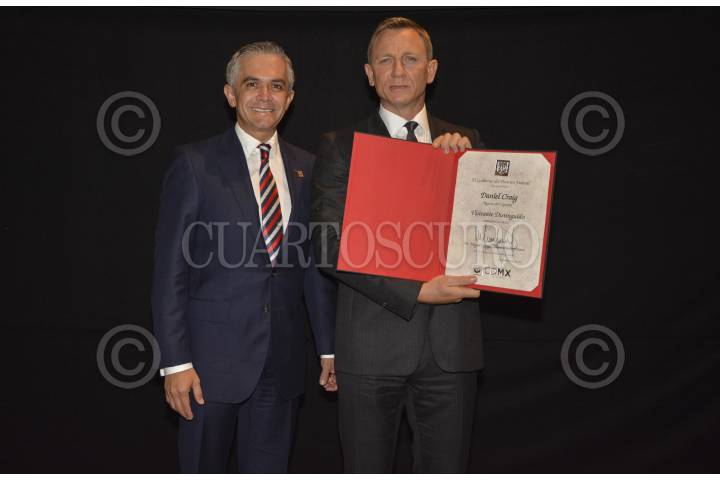 MÉXICO, D.F., 03NOVIEMBRE2015.- El Jefe de Gobierno, Miguel Ángel Mancera Espinosa, sostuvo una reunión con el actor británico Daniel Craig, protagonista de la nueva película del Agente 007 Spectre, a quien entregó el pergamino como Visitante Distinguido de la Ciudad. FOTO: GDF /CUARTOSCURO.COM